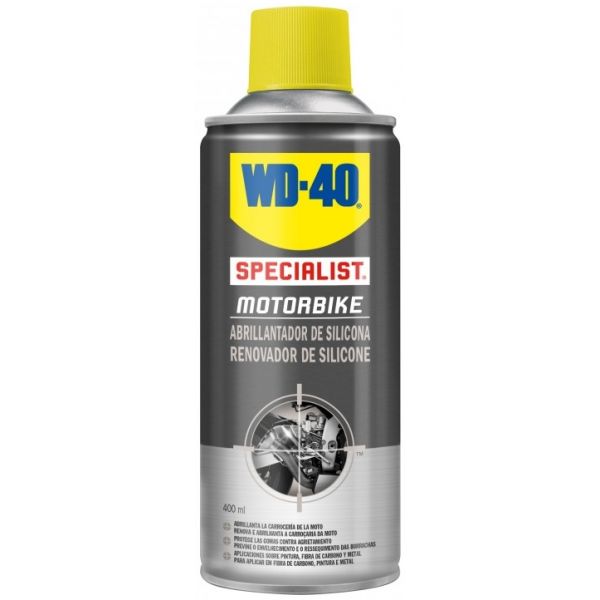 WD-40 Specialist Motorbike Renovador de Silicone foi concebido para obter um acabamento brilhante em plásticos e borrachas protegendo-os da humidade e do desgaste.